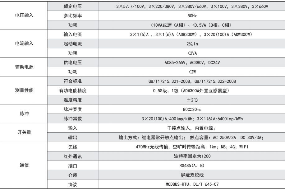 ADW300無(wú)線(xiàn)計(jì)量?jī)x表主要用于計(jì)量低壓網(wǎng)絡(luò)的三相有功電能,具有體積小、精度高、功能豐富等優(yōu)點(diǎn),并且可選通訊方式多,可支持RS485通訊和Lora、2G、NB、4G等無(wú)線(xiàn)通訊方式,增加了外置互感器的電流采樣模式,從而方便用戶(hù)在不同場(chǎng)合進(jìn)行安裝使用。可靈活安裝于配電箱內(nèi),實(shí)現(xiàn)對(duì)不同區(qū)域和不同負(fù)荷的分項(xiàng)電能計(jì)量、運(yùn)維監(jiān)管或電力監(jiān)控等需求。