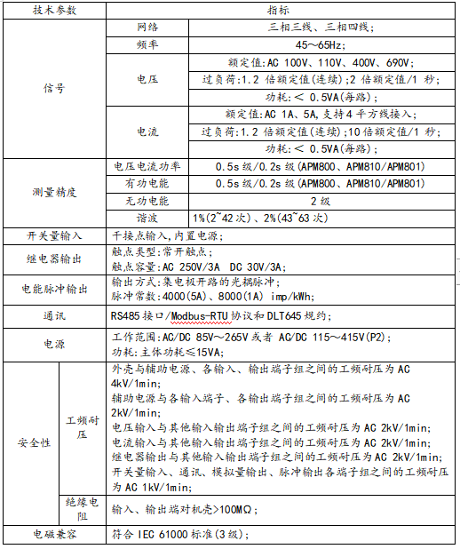 安科瑞電氣 APM 系列網絡電力儀表是按 IEC 標準設計,具有全電量測量,電能統計,電能質量分析及網絡通訊等功能,主要用于對電網供電質量的綜合監控。該系列儀表采用了模塊化設計,配合功能豐富的外部 DI/DO 模塊、AI/AO模塊、SD 擴展卡事件記錄(SOE)模塊、網絡通訊模塊,可以靈活實現電氣回路全電量測量及開關狀態監控,雙 RS485 和以太網接口配合可實現 RS485 主站數據抄送,省去數據交換機。 PROFIBUS-DP 接口可以實現高速數據傳輸及組網功能。