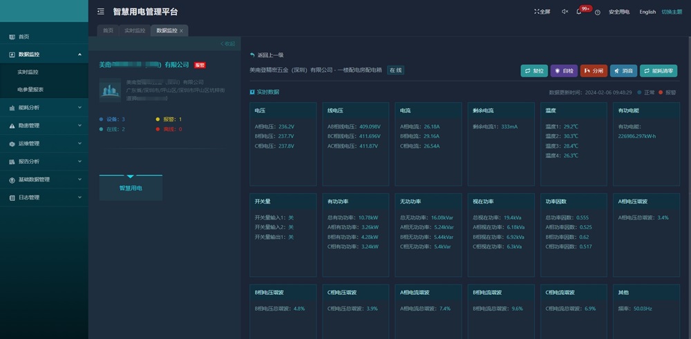 Acrelcloud-6000智慧用電管理云平臺體驗地址:http://safe.acrel-eem.com/用戶名:acrel 密碼:123456
