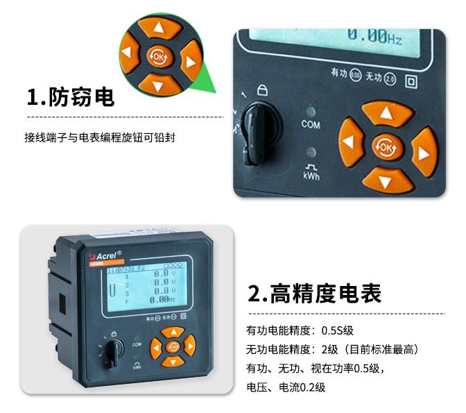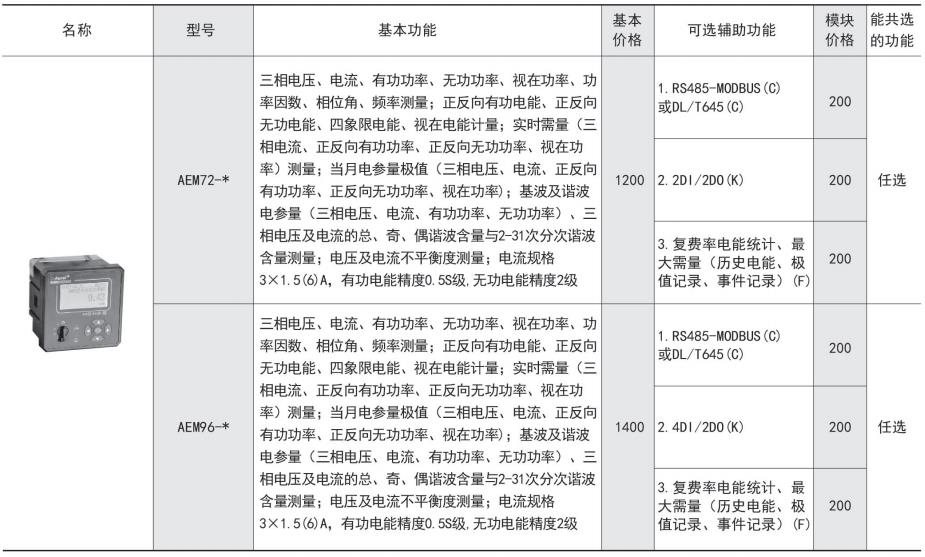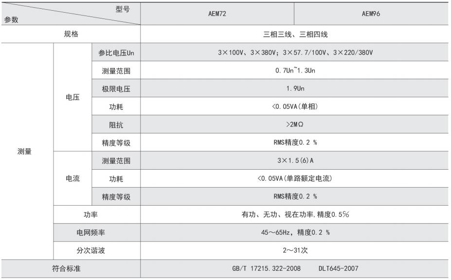 AEM系列三相嵌入式電能計量表是一款主要針對電力系統、工礦企業、公用設施的電能統計、管理需求而設計的智能電能表,集成三相電力參數測量及電能計量與考核管理,提供上24時、上31日以及上12月的電能數據統計。具有31次分次諧波與總諧波含量檢測,帶有開關量輸入和繼電器輸出可實現“遙信”和“遙控”功能,并具備報警輸出,可廣泛應用于多種控制系統、SCADA系統和能源管理系統中。產品符合國家標準GB/T 17215.322-2008《第22部分∶0.2S級和0.5S級靜止式有功電能表》和協議MODBUS-RTU的要求。