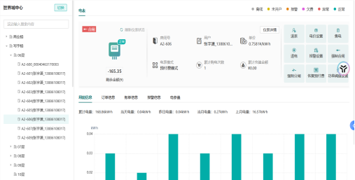 在園區的強電間、樓層配電箱、地下充電樁以及地上電瓶車充電樁等位置安裝了約1.5萬只預付費電能計量表計,包括DTSY1352-4G、DDSY1352-4G等型號,覆蓋了園區內大部分用電場景和租戶。