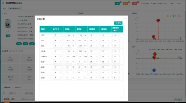 用戶可以對斷路器進行參數設置,對電參量的報警值進行設置,達到隨時報警的作用。