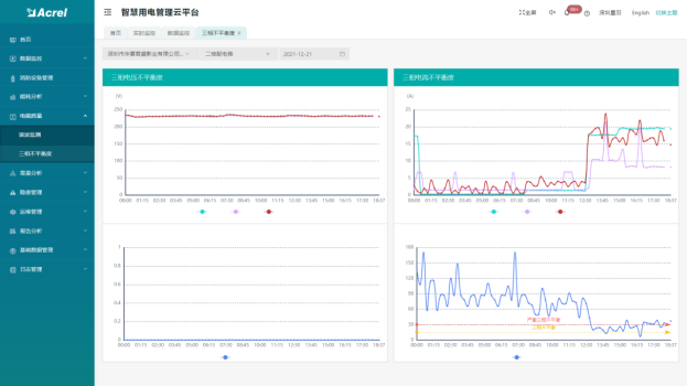 支持總諧波、分次諧波(2~31次)監(jiān)測及三相不平衡度監(jiān)測。