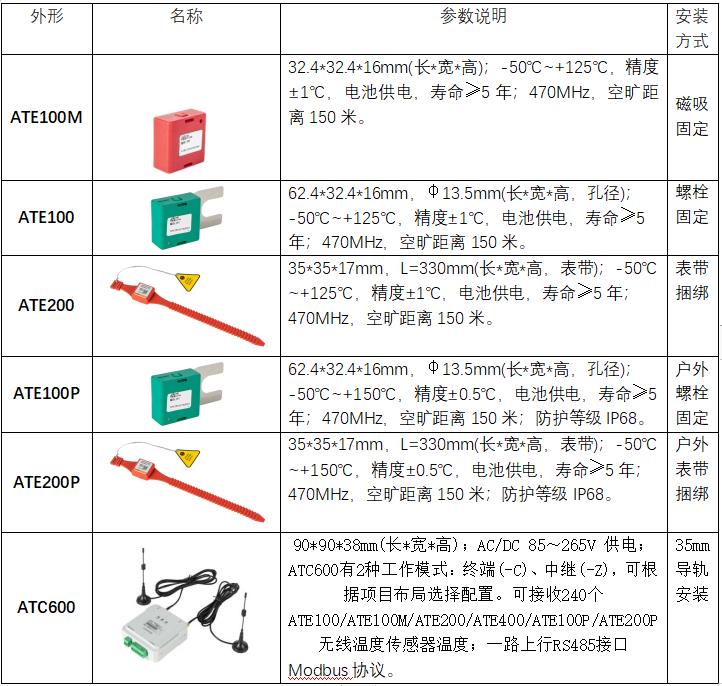 根據上述要求,故此選擇安科瑞的無線測溫產品如下表。