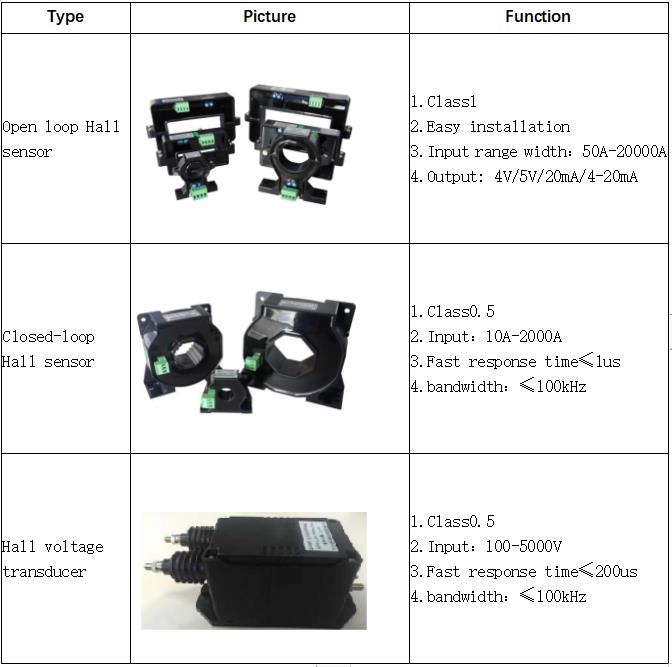 Closed-loop Hall sensor | 10A~2000A | 50mA/100mA/200mA | ±15V | class0.5 |