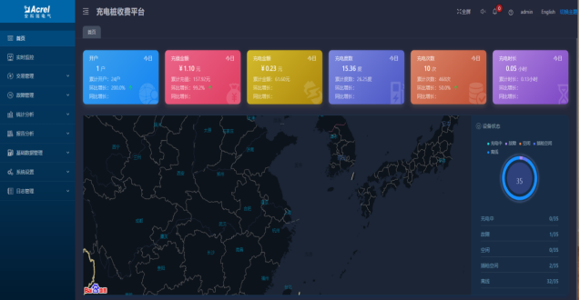 可以按站點名稱進行篩選,顯示站點詳情、充電槍列表、統計訂單信息、故障記錄,點擊某個充電槍編號后在進入充電槍監控頁面