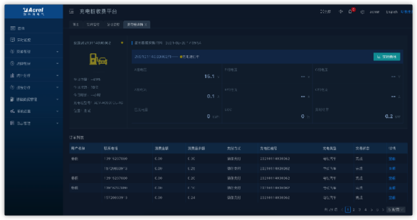 ⑤充電槍監控:統計該充電槍的訂單信息,顯示訂單列表,故障列表